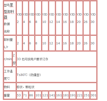 防爆型卸料器技術(shù)參數(shù)